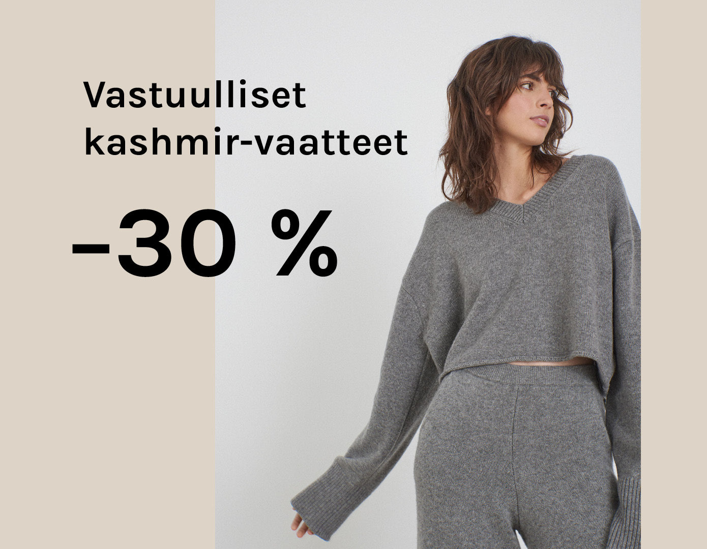 Myymme viimeiset vastuullisesti valmistetut kashmir-villaiset tuotteet hyvillä alennuksilla. Nopeimmat nappaavat laatuvaatteet hyvään hintaan itselleen ja ilman toimituskuluja. Vain muutama tuote jäljellä!